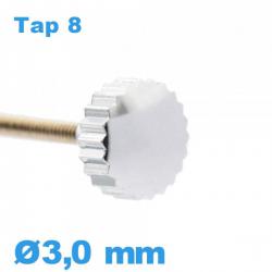 Le pas de vis Tap 8 (0.80 mm) désigne la distance entre deux filets successifs à l'intérieur de la gorge de fixation de la couronne. Cette dimension est précise et différente des autres tailles courantes, telles que le Tap 10 (0.90 mm). Cette mesure joue un rôle capital dans la compatibilité de la couronne avec la tige de remontoir de la montre. Une taille non conforme ou légèrement décalée peut entraîner une mauvaise fixation, des risques d'endommagement du pas de vis ou une perte d'étanchéité.