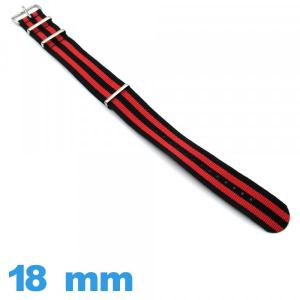 Bracelet Nato 18mm de montre Textile Noir et Rouge