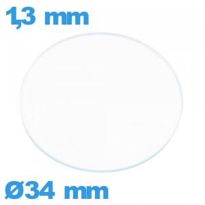 Verre 34 mm circulaire plat pour montre en verre minéral