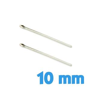 Lot de 2 goupilles d'une longueur de 10 mm. Ces 2 goupilles de qualité et durables dans le temps permettent de rattacher les 2 parties d'un bracelet. Pour les retirer par la suite, il faut les dissocier avec un chasse-goupille disponible dans la catégorie des outils de montre. Si vous ne savez pas comment faire, My-Montre a rédigé des guides pour vous permettre de raccourcir un bracelet de montre. Le lot comporte 2 goupilles d'une longueur de 10 mm. Si vous n'en voulez qu'une, il vous suffit de vous rendre sur la page 1 goupille de montre de 10 mm. Si vous souhaitez entrenir la longévité de votre bracelet, n'utilisez pas un marteau classique mais un petit marteau horloger. Ces 2 goupilles s'adaptent sur des bracelets acceptant des goupilles.