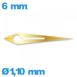 Avec le cadran central d'un mouvement montre, accordez ce genre d'aiguille de montre. Se rattache correctement avec son orifice de raccordement mesurant 1,10 mm de diamètre (A) sur le pignon qui indique les heures. Cette aiguille mesure 6mm (B) à partir du milieu du trou de liaison. S'installe sans difficulté sur l'axe d'un mouvement au moyen d'un outil horotec aiguilles pour montre - diam. 0.50 et 1.00, ce style d'aiguille est d'apparence doré. Avec un revêtement lumineux d'apparence blanc, cette aiguille sert pour lire l'heure le soir. Cette aiguille De couleur dorée est conçue grâce à du métal. A ajuster à un mouvement sur le cadran central.
