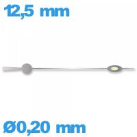 Sur un mouvement de montre, au niveau du cadran principal, ce style d'aiguille mouvement peut être rattaché. S'assemble convenablement avec son orifice de liaison ayant comme mesure 0,25mm de diamètre (A) sur le pignon indiquant les secondes. Ce genre d'aiguille mesure 12,5 mm (B) en partant du centre de l'orifice de raccordement. Au moyen d'un outil horotec aiguilles pour montre - diam. 0.50 et 1.00, cette aiguille s'accorde sans problème sur l'axe d'un mouvement de montre. Avec un revêtement lumineux de couleur vert pâle, ce style d'aiguille peut servir à regarder l'heure dans la nuit après l'avoir exposée durant un court moment à la lumière. Ce style d'aiguille est constituée en métal. Affiche un orifice d'accroche de 0,25mm.