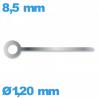 Sur le cadran central d'un mouvement cette aiguille pour mouvement est à accomoder. Avec son orifice de liaison ayant comme mesure 1,20mm de diamètre (A), adaptez adéquatement ce genre d'aiguille mouvement sur le pivot disponible sur les mouvements. A partir du centre de l'orifice d'attache, ce style d'aiguille est longue de 8.5 mm (B). Au moyen d'un outil horotec pour aiguilles 0,8 mm, cette aiguille se combine sans souci sur le pignon d'un mouvement montre. Pour ajuster les aiguilles montre sur un mouvement, il faudra l'ouvrir au préalable. De la marque Horotec, est conçue au moyen de métal de teinte argenté. Dispose d'un orifice d'accroche de 1,20 mm.