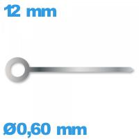 Avec un mouvement montre, au niveau du cadran central, cette aiguille peut être appliquée. Associez convenablement sur le pivot des minutes ce style d'aiguille pour mouvement avec son orifice d'attache ayant pour mesure 0,60mm de diamètre (A). A compter du milieu du trou d'attache, l'aiguille mesure 12mm (B). Se réuni sans effort sur le pignon d'un mouvement à l'aide d'un outil pour aiguille montre diamètre 0,2 mm. Si vous souhaitez équiper les aiguilles sur le mouvement montre, il est primordial d'avoir accès à l'intérieur avant tout. Composée à base de métal. Mesure en largeur 0.50mm et de longueur 12 mm. Montre un orifice d'attache de 0,60mm.