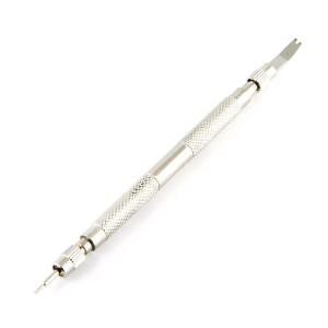Ce pointeau de pose professionnel permet de retirer efficacement et en toute simplicité les pompes de montre disposées sur un bracelet. Mesurant 13,7 cm de long pour 7 mm de large, le poids de l'outil est de 26g. Disposant de deux extrémités interchangeables, le manche comporte des stries faisant office de grippe, pour une prise en main optimale. L'une des extrémités est une tête plate inclinée, permettant de retirer les pompes plus facilement. La seconde tête, plus fine, permet de manipuler avec précision les pompes et avoir accès à des parties où la première tête ne peut pas être utilisée.