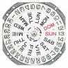 Mouvement montre de marque Hattori référence VJ43 à quartz. Mesurant 25,6mm pour le diamètre, le mouvement a pour profondeur 2,94 mm. Grâce à un outil horotec pour aiguilles 0,8 mm réglez les aiguilles au niveau du pignon : 1,20 mm pour celle des heures, 0,70 mm pour l'aiguille des minutes et 0,17 mm pour celle des secondes. Ce mouvement d'horlogerie hattori VJ43 fonctionne au moyen d'une pile montre AG1. Ce genre de calibre montre avec une lecture de l'heure analogique dispose d'un dateur à l'endroit de 3h. Le dateur dispose des chiffres noirs sur fond blanc. À 3h en noirs sur fond blanc ( dimanche en rouge ), en Espagnol et Anglais, découvrez les jours. La tige de remontoir du mouvement peut être agrandie à l'aide d'une rallonge tige de remontoir ajustée.