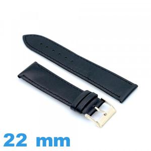Bracelet 22 mm montre noir Cuir véritable de veau lisse