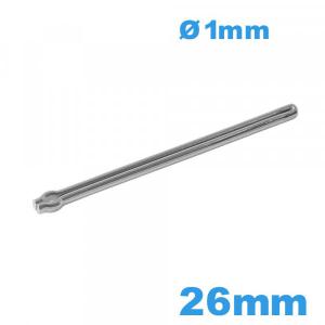 Ce type de goupille fendue est employée pour fusionner un bracelet en métal à un boîtier ou les 2 bouts du bracelet montre. La longueur de la barre est de 26 mm pour 1 mm de diamètre. La tige est argentée. Doté de votre pied à coulisse, déterminez la mesure rigoureusement et adaptez une barre à un bracelet de montre en céramique par exemple. Si vous choisissez d'extraire les goupilles en acier inoxydable calée à l'intérieur du trou d'un bracelet métal de montre, il est nécéssaire d'obtenir le chasse goupille montre. Découvrez notre magasin en ligne de montres et découvrez notre vaste gamme de bracelets en alliage compatibles avec cette sorte de goupille fendue.