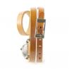 Le bracelet en cuir orange affiche une longueur de 60 cm avec une largeur de 0,8 cm. Le bracelet de montre peut s'enrouler plusieurs fois au poignet grâce à sa longueur. Le bracelet arbore 6 trous pour qu'il tienne de façon maximum au niveau du poignet. Ce produit s'ouvre et se ferme par son fermoir à boucle ardillon dorée fabriquée en metal.