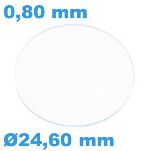 Verre 24,60 mm Plat Saphir pour montre Circulaire épaisseur 0,80 mm inrayable
