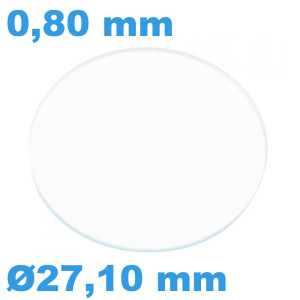 Verre Saphir 27,10 mm Plat de montre Circulaire épaisseur 0,80 mm inrayable