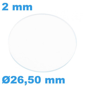 Verre épaisseur 2 mm Plat Saphir 26,50 mm pour montre Rond inrayable