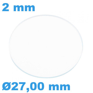 Verre Plat Rond Saphir pour montre 27 mm épaisseur 2 mm inrayable