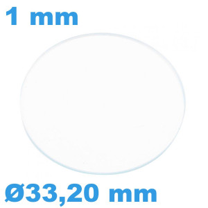 Verre épaisseur 1 mm Plat Saphir 33,20 mm pour montre Rond inrayable
