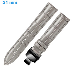 Bracelet montre 21 mm Cuir véritable fermoir Papillon Gris