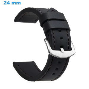 Bracelet Cuir PU boucle Ardillon de montre Noir 24 mm