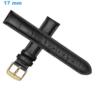 Bracelet 17 mm Cuir véritable Noir pour montre boucle Ardillon