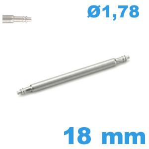 La barre pompe constitue un élément essentiel pour assembler solidement deux parties de bracelet au boîtier d'une montre. Fabriquée en acier inoxydable robuste, cette barrette de 18 mm de long présente une finition argentée soignée. Sa tige à ressort a un diamètre précis de 1,78 mm, s’adaptant parfaitement aux entrecornes prévus pour un diamètre de 1,80 mm, garantissant ainsi une compatibilité et une fixation fiables. D'un design droit classique, cette barre pompe est équipée de deux extrémités munies d'une double rainure, assurant un ajustement optimal et sécurisé dans les crosses du boîtier.