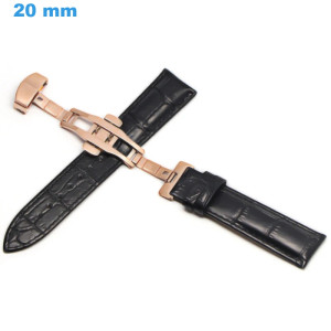Bracelet 20 mm Cuir véritable pour montre Noir Papillon