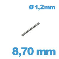 C'est un produit de la rubrique goupille utilisé pour attacher les deux parties d'un bracelet métallique. Large de 10 mm la clavette est efficace pour le raccourcissement de bracelet de montre. Ayant un gabarit de 1,0 mm de diamètre, l'article à embout rainuré de teinte argenté s'adapte avec un bracelet métal pour montre au format 10 mm. Veuillez bien estimer la bonne taille de votre barre à subsituer en déterminant la mensuration du maillon avec une règle graduée. La clavette à embout moleté sert comme un axe afin de réunir deux parties d'un bracelet de montre métallique désunis. Si vous voulez tirer la barre placée à l'intérieur du renfoncement d'un bracelet métal, il est utile d'acquérir un chasse-goupille montre pas cher. Un guide est disponible gratuitement afin d'apprendre à raccourcir montre métal équipé de votre chasse-goupille manuel. La tige est envoyée par taille dans un enveloppe à bulle.