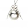 C'est un pendentif montre en forme de boule argentée en métal brossée accompagné de 2 ailes argentées.