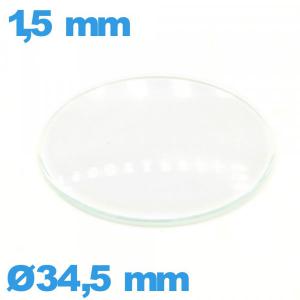 Verre en verre minéral circulaire bombé 34,5 mm montre