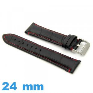 Bracelet 24 mm montre Noir cuir véritable Rembourré Alligator