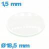 Verre circulaire 18,5 mm en verre minéral bombé de montre