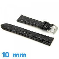 Bracelet 12mm pour montre Noir cuir Rembourré Crocodile