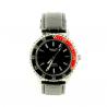 Le boîtier de cette montre, orné d’un cercle noir et rouge sur la face, comprend un carreau en verre minéral et une couronne dentelée sur les cotés. Sur ce cercle, les chiffres sont inscrits en blanc. Composé d'acier inoxydable et sans nickel dans sa composition, la taille globale de ce boîtier est de 4 cm de diamètre.