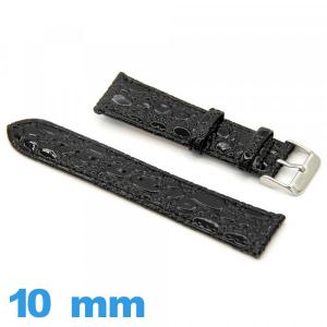 Bracelet cuir Noir 10mm pour montre Crocodile