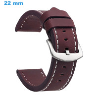 Bracelet 22mm de montre brun foncé cuir véritable plat lisse en détail